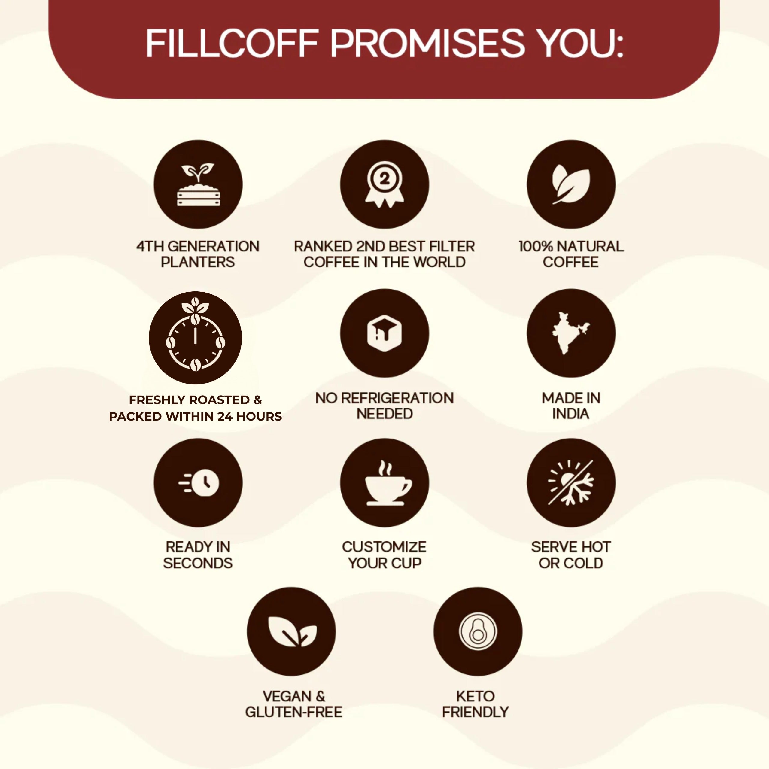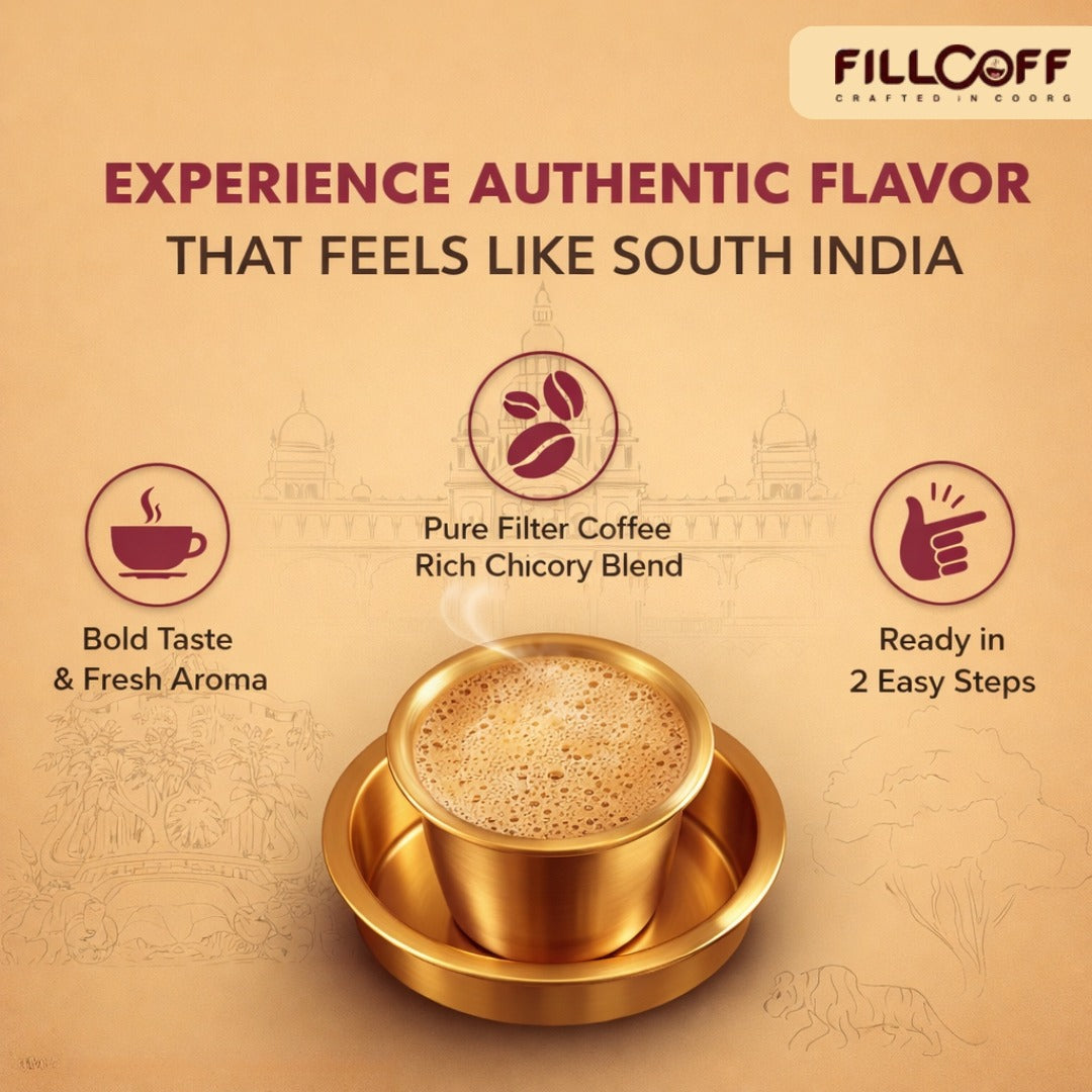 Bold yet balanced, this blend delivers strength without bitterness and richness without heaviness. Whether you enjoy it strong and piping hot or creamy and comforting, Fillcoff brings an authentic café-style filter coffee experience into your home.